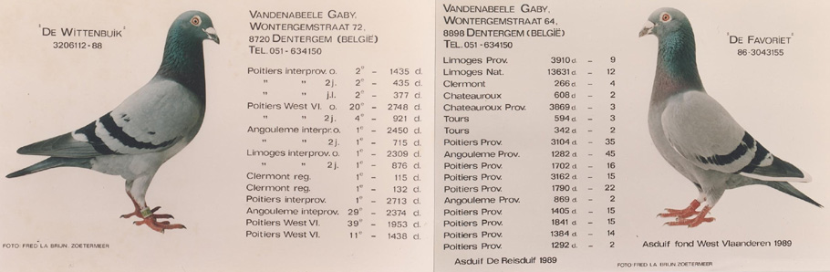 在80年的末期B86-304355最愛號獲1989年KBDB 西法蘭德省長距離鴿王一位BRD全國長距離鴿王一位